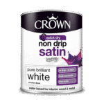 Crown Non Drip Satin – pusiau matiniai dažai medienai ir metalui vidaus darbams. Bekvapiai, nenutekantys, su „Breatheasy“ technologija – patogus naudojimas net pradedantiesiems. Idealiai tinka durims, palangėms, baldams ar radiatoriams dažyti.
