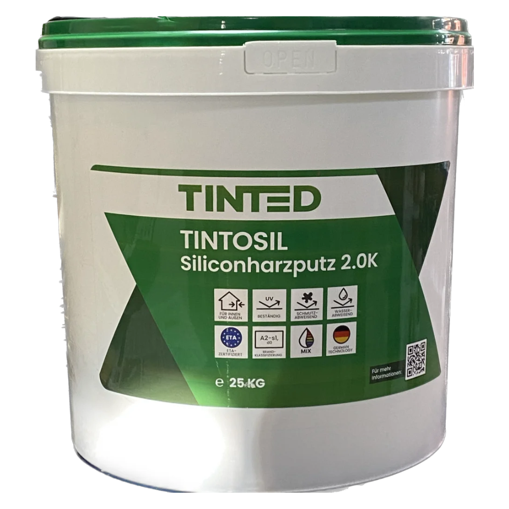 DaugiauTINTOSIL Siliconharzputz 2.0k silikoninis struktūrinis tinkas – paruoštas naudojimui, atsparus UV, drėgmei ir biologiniam užterštumui. Tinka šiltinimo sistemoms ir mineraliniams paviršiams. Puikus garų pralaidumas, mažas vandens įgėris, A2-s1,d0 atsparumo ugniai klasė.