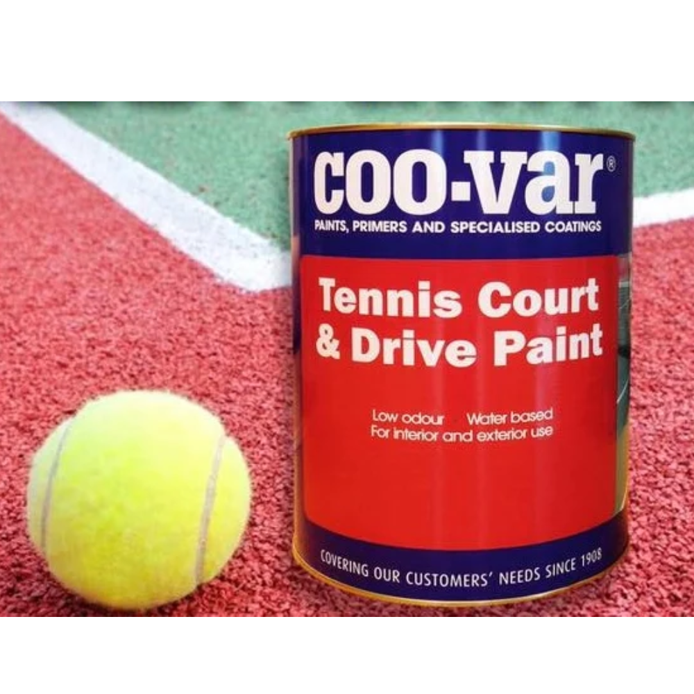 DaugiauCOO-VAR® Tennis Court and Drive Paint – neslidūs akriliniai dažai sporto aikštelėms ir kiemo dangoms. Puikiai tinka betonui, asfaltui ar grindiniui. Atsparūs nusidėvėjimui ir oro poveikiui. Naudojami teniso, krepšinio, tinklinio aikštelėms. Galimos spalvos: žalia, raudona, juoda.